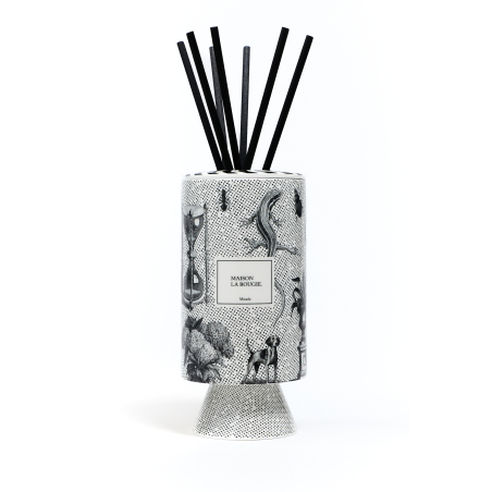 Ambre, rose, helioptre, patchouli, cannelle, vanille, fève tonka.